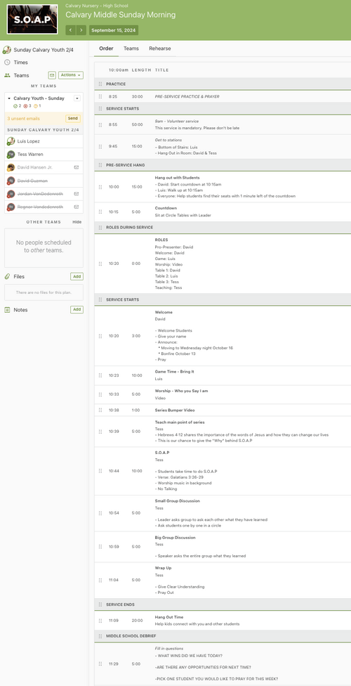 - If Feeling Sick: Please Reach Out Before Sunday!