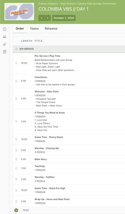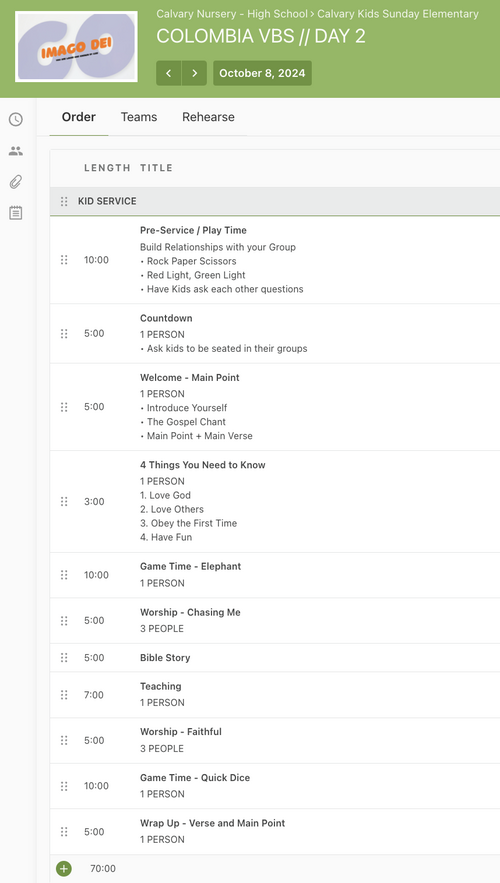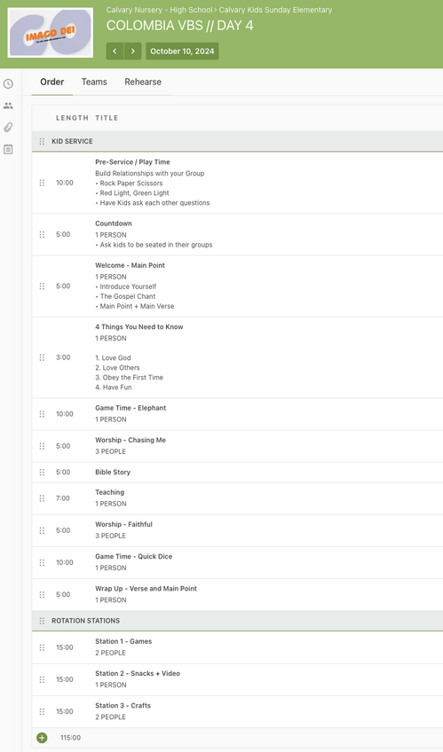 VBS 1.5 Hour Service